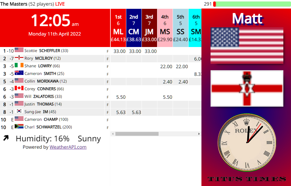 Tiger Woods at the 16th hole in the final round of the US Masters in 2005.